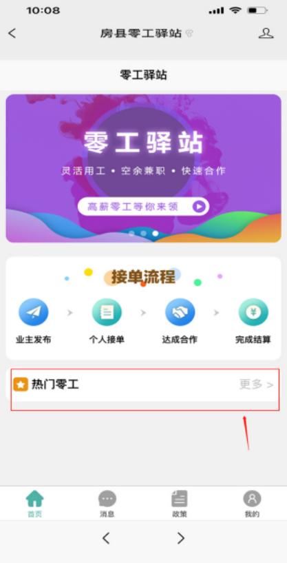1. 点击“热门零工”,进入零工市场首页