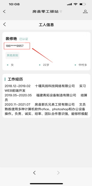 3. 对于心仪工人可以拨打工人电话或者零工驿站联系电话