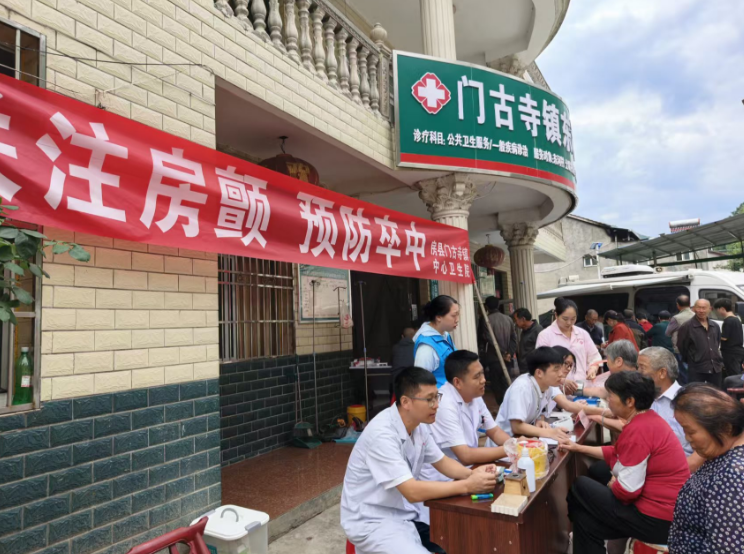 义诊现场,门古寺镇中心卫生院医护人员、村医、家庭医生签约团队免费为村民测量血压、血糖、血脂、肝肾功能、心电图等,发放相关宣传资料。医师向群众详细解释了房颤的危害、症状、初步筛查方法,强调早发现早治疗房颤对预防卒中的重要意义。