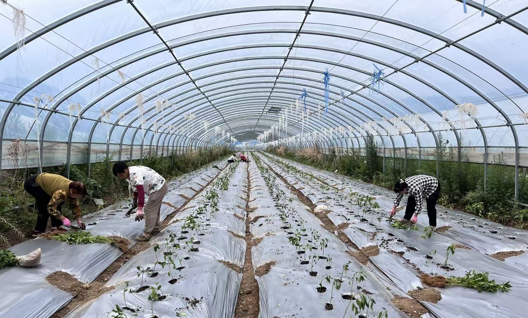 在军店镇中村村设施基地,农户们在技术人员张磊的指导下,手持辣椒苗,经过打窝、放苗、培土等工序,一株株嫩绿的辣椒苗很快整齐地排列在大棚中,焕发出勃勃生机。