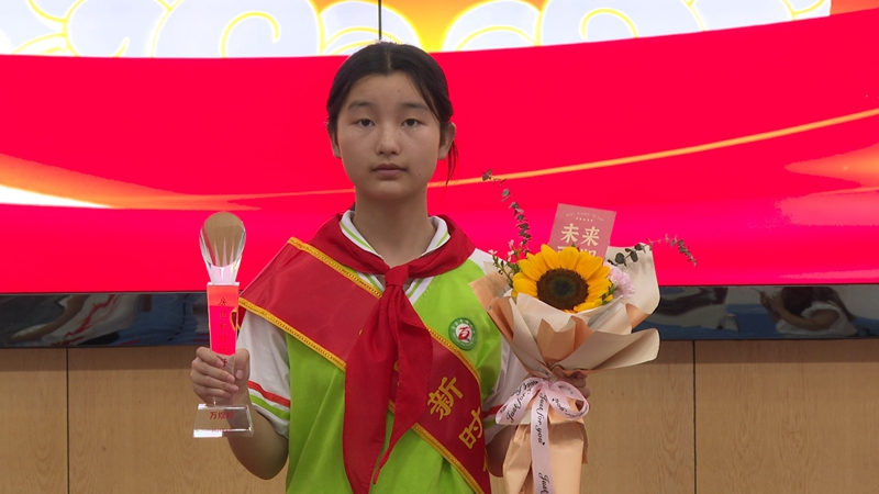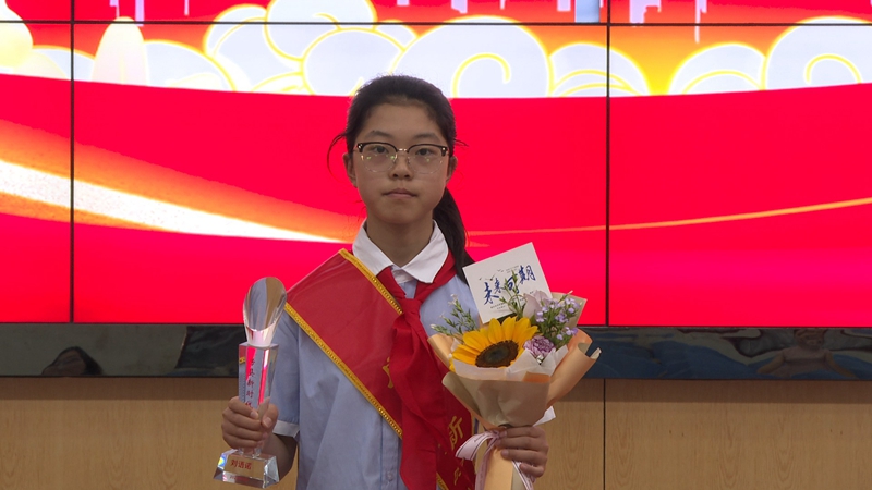 “我感到无比地荣幸。‘路漫漫其修远兮,吾将上下而求索’我会做有理想、有担当的新时代好少年。”“新时代好少年”青峰小学六年级学生万煜婷说。