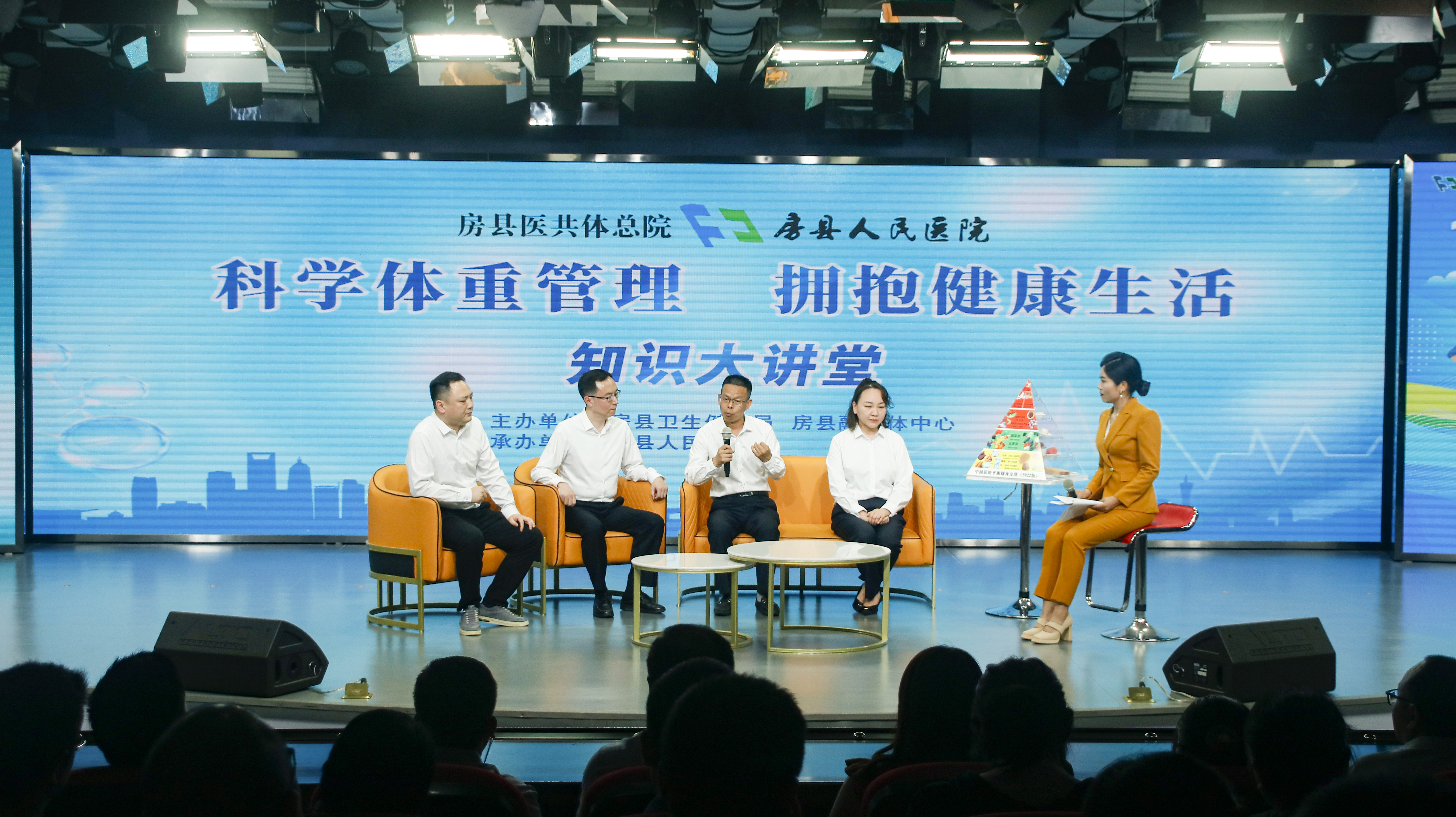 活动邀请了县人民医院内分泌科主任刘邦才、临床营养科主任张霞、中医康复科主任丁一、普外科主任李任重四位经验丰富的医师,他们分别从科学减重、饮食调理、中医调养、手术治疗等专业领域介绍了如何科学管理体重,活动现场,8名观众零距离“问诊”,四位医师现场答疑,同时现场还有体重指数测算仪器供观众使用。