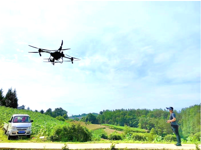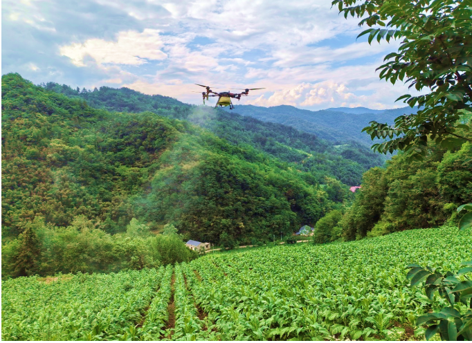 房县新闻网讯 通讯员 李传广 刘琛 报道:夏日的鄂西北烟区,青山叠翠,绿意盎然。一片片整齐的烟田掩映其间,舒展着丰收的希望。在房县土城镇的高标准烟田上空,植保无人机轻盈穿梭,发出沉稳而有力的低鸣,将药剂精准雾化,均匀洒向烟株。