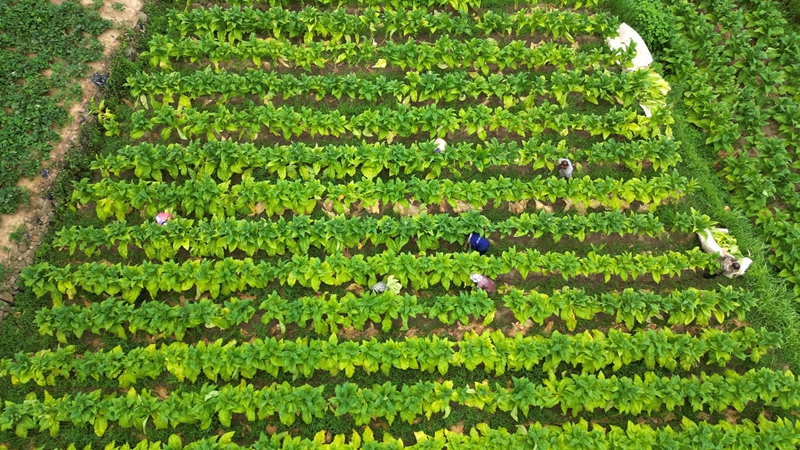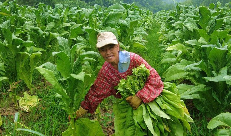 走进黄杨村,一片片肥硕的烟叶在田间迎风摇曳,烟农们穿梭于烟垄间。今年 57岁的黎胜龙种植烟叶已有20余年。今年,他家发展烟叶70余亩。“今年产量也还可以,雨水好,烟长起来了,干烟叶可以收个两万斤,价钱上可以卖个35万。”种植大户黎胜龙脸上洋溢着丰收的喜悦。