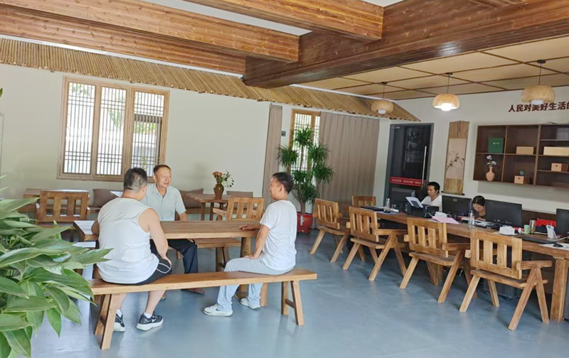 值得一提的是,服务中心巧妙融入了陈家铺村的特色元素——依托村内3A级景区资源,设置了茶叶、黄精等本地农产品及陶艺工艺品展示柜,既展现了村庄“茶园观光、陶艺体验、农耕文化”的多元特色,也为村民和游客提供了了解本土产业的窗口,让党群服务中心同时成为乡村特色的展示平台。
