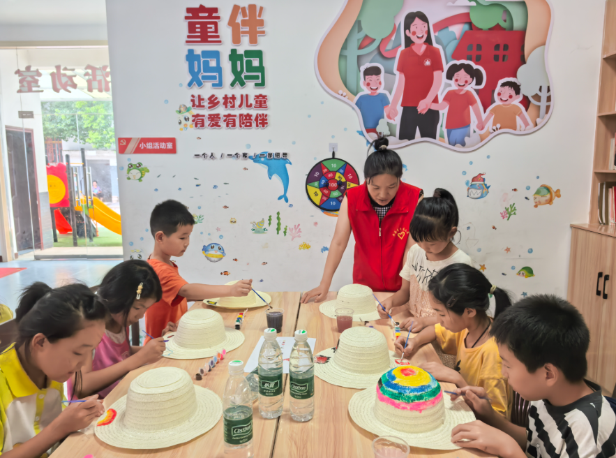 “小朋友们,今天我们一起来画草帽,看看谁的创意最棒!”在化龙村“童伴之家”,志愿者老师正带领孩子们开展手绘草帽劳动实践课。孩子们发挥想象力,用五彩颜料在草帽上描绘出蓝天、白云、小动物,一顶顶普通的草帽瞬间变成独一无二的“艺术品”。