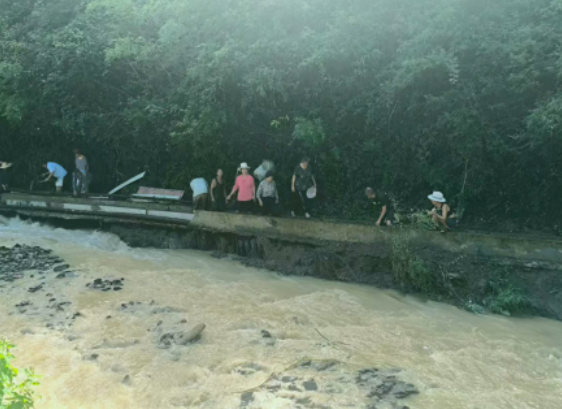 在返回村委会的路上,一直联系不上三里坪电站下游的群众。那里地势低,容易积水。想起聋哑老人阮班进,毛继荣毅然往三里坪电站方向走去。没走多远,一段近百米的路被洪水冲成了泥流,根本过不去。