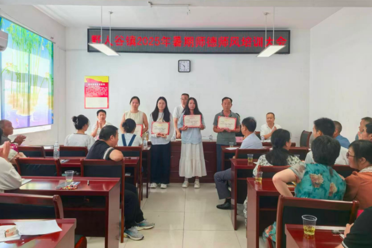 培训中,野人谷镇党委书记雷虎作了《加强师德师风建设》的动员报告,报告总结了过去一年野人谷镇教育系统取得的主要成绩,深刻剖析了当前师德师风存在的突出问题、针对师德师风建设提出了具体要求。教育局党组成员付祖强同志作了《扎根乡土不负韶华用爱与责任点亮乡村未来》讲话。野人谷镇中心学校校长杨曙辉以《培根铸魂担当使命,凝心聚力谋新篇》为题,报告中肯定了上学年全镇中小学在党建引领、学校治理、制度建设、教师队伍、家校合作等方面的成绩,也中肯地指出了全镇学校管理、教学质量、育人策略等方面的差距。进一步组织了师德培训并对近期工作进行了安排,警示全体教师牢记法律意识,严守道德防线,恪守廉洁从教;激励全体教师爱岗敬业、廉洁奉公,提高育人本领,强化师德意识,明确使命担当;号召全镇教师新学期、新起点、开好局、起好步,勉励教师们重整旗鼓,整装待发,全力以赴迎接新学年,创造新辉煌。