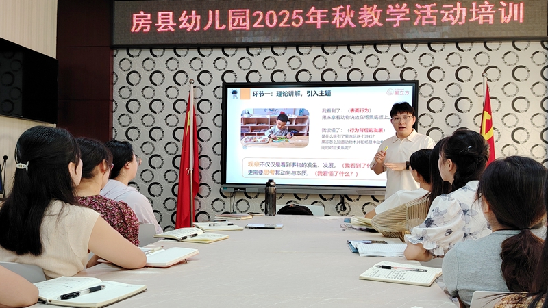 房县新闻网讯 通讯员 彭招英 报道:8月27日,房县幼儿园邀请武汉市爱立方教育培训中心开展专题教学培训,围绕“幼儿语言区游戏指导”与“AI教育应用”两大主题,为全体教师带来一场融合理论与实操的专业学习盛宴。