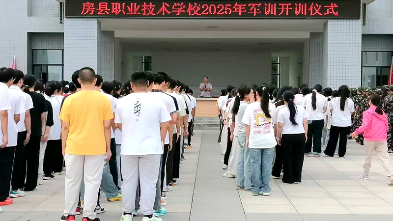 房县新闻网讯 通讯员 魏才春 报道:9月2日,房县职业技术学校操场上整齐排列,该校2025级800余名新生以昂扬姿态参加新生军训开训仪式。