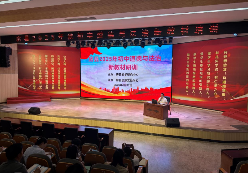 房县新闻网讯 通讯员 樊鹏 报道:9月12日,房县2025年初中道德与法治新教材研训活动在房县思源实验学校顺利举办。此次活动汇聚全县初中道德与法治教师,围绕新教材落地、教学实践优化、中考趋势应对等核心议题展开深度研讨,为房县思政教学质量提升注入新动能。