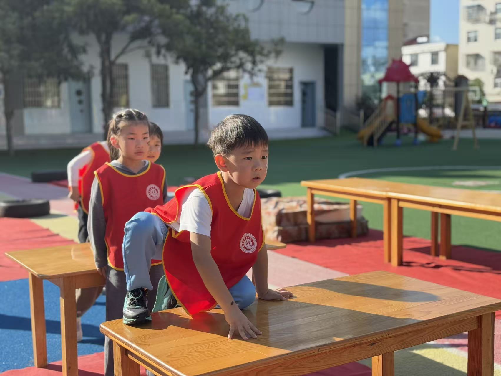 在老师的带领下,孩子们用稚嫩的歌声合唱了红歌《红红的太阳》,老师们利用轮胎、梯子、板凳、桌子、地垫等户外游戏材料,让孩子们装扮成“小红军”,通过“匍匐前进”“翻山越岭”“穿越火线”等游戏,让“小红军”们以走、跑、跳、钻、爬,以体能挑战闯关的模式,充分体验革命先烈长征之路的艰辛不易。