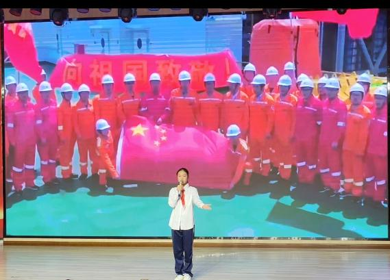 赛场中,窑淮学校周傲涵同学以《以英雄之志 铸强国之魂》为题进行讲解。她身着整齐校服,胸前红领巾格外鲜艳,面对评委与观众从容不迫、神采奕奕。配合着精心剪辑的背景视频,她的讲述抑扬顿挫、情感充沛,既有对革命先驱坚定信仰的崇高礼赞,也有对建设者们默默奉献的深情致敬,更有对祖国辉煌成就的由衷自豪。周傲涵用清脆而坚定的童声,将历史的厚重与时代的气息紧密相连,充分展现了窑淮学校学子良好的语言表达、深厚的家国情怀与蓬勃的青春朝气。