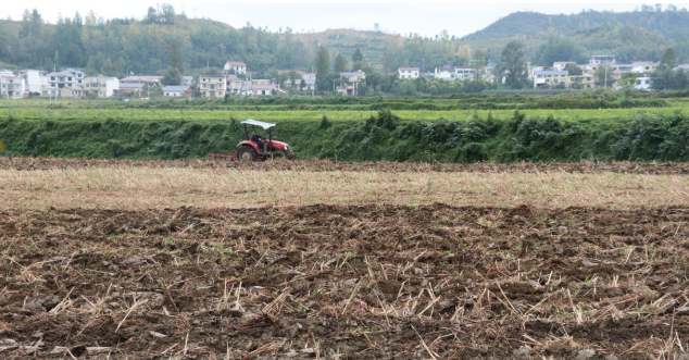 “寒露到霜降,种麦日夜忙”。在军店镇中村村,拖拉机轰鸣着在满是高粱茬的地里翻耕着。农机手在耕耘间隙告诉笔者:“下了近个把月的雨,这几天终于放晴了,赶紧趁这个机会把地犁出来,晾几天就要开展小麦条播了,这一片全种小麦。”