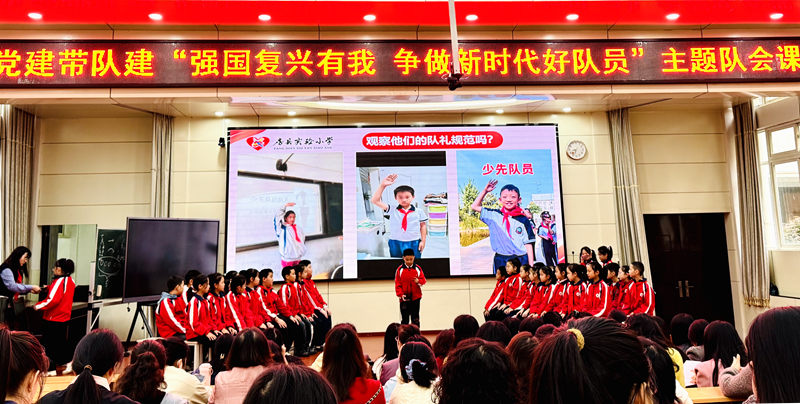 队会通过丰富多样的形式充分调动队员积极性。各小队分别组织开展内容充实的学习活动:有的讲解共产主义儿童团的发展历程,结合随机提问帮助队员掌握少先队的成立时间、标志及全称;有的播放红色题材短片,带领队员回顾革命先辈的奋斗故事,体会今日幸福生活的来之不易;还有的围绕“榜样学习 践行承诺”展开热烈讨论,队员们踊跃发言,结合“认真学习”“帮助他人”“爱护祖国山河”等具体事例,分享自己对“强国复兴”的理解,使这一宏大主题转化为可学可做的榜样力量。