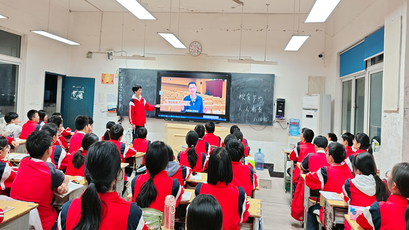 活动中,各班级通过观看粮食安全科普视频,让学生了解粮食从种植到收获的艰辛过程,让他们体会到“一粥一饭,当思来之不易”。主题班会中,各班班主任围绕“为什么要节约粮食”“日常生活中如何践行光盘行动”等话题与学生展开讨论。同学们积极发言,分享自己身边的节约故事,提出实用的节约小妙招。