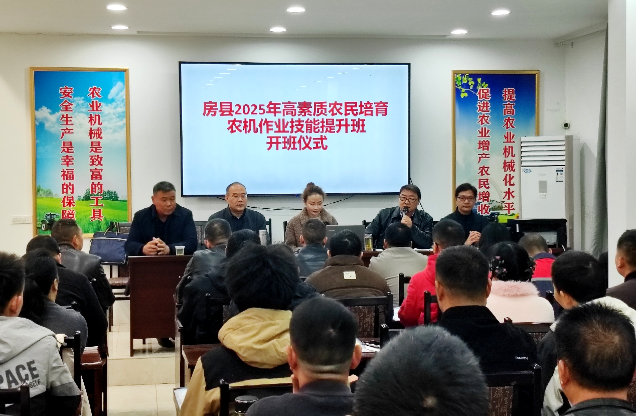 房县新闻网讯 通讯员 朱宏伟报道: 为进一步加快培养现代新型农民,助力乡村振兴,10月20日,我县2025年度高素质农民培育农机作业技能提升班在富民农机驾驶学校正式开班,来自全县50名从事农业生产、经营服务的农机作业人员参加培训。