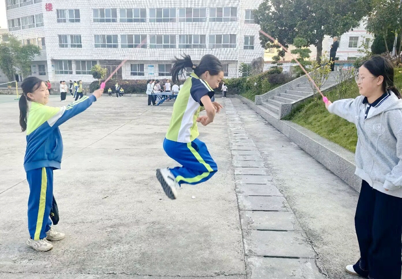 下午4时许,各个社团指导老师领着学生奔赴目的地。校园操场顿时化作一片热闹的青春海洋。啦啦操队员们在音乐老师的指导下,伴随动感旋律节奏翩翩起舞;乒乓球团员你推我挡,竞争激烈;跳绳队员长绳、短绳各自甩开,跃动的身影引来一阵阵热烈喝彩;象棋、围棋、五子棋队员们静气凝神,谋划布局,智力比拼对弈;汉字、英语书法与绘画小组成员尽显笔力才气;趣味游戏“袋鼠跳”“两人三足”等活动让大家在协作中开心快乐……同学们在轻松快乐的氛围中交流互动,尽情感受社团文化的独特魅力,整个操场都洋溢着蓬勃的青春气息,成为校园里一道道鲜活动人的风景。