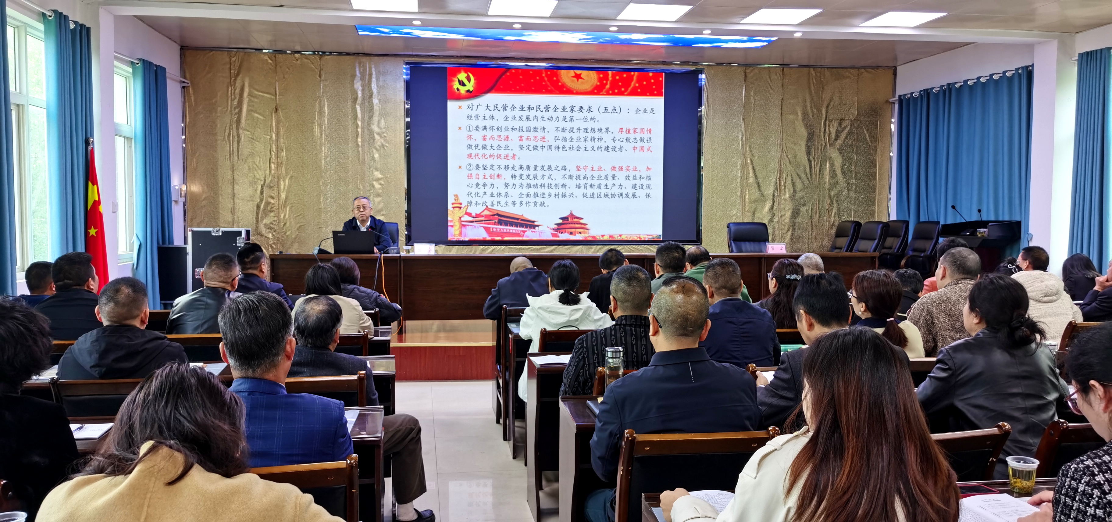 此次培训由县委社会工作部、县工商联与县委党校联合组织,全县部分新兴领域党组织负责人及重点产业民营企业代表等80余人参加。