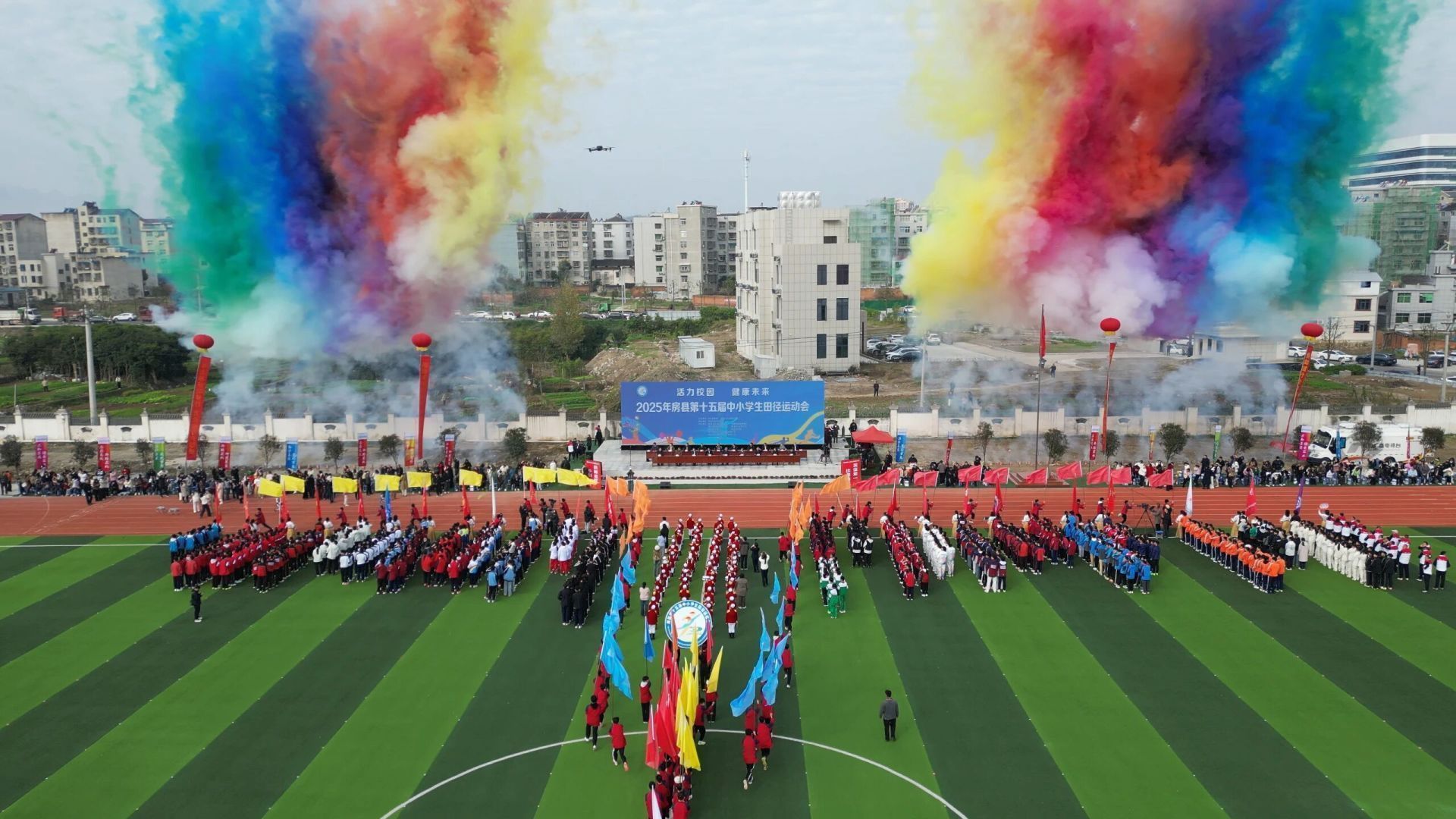 开幕式上,鼓声铿锵,振奋人心。英姿飒爽的国旗队率先入场,随后,由教师方阵、县直学校方阵及各乡镇代表队组成的共22支队伍依次经过主席台。方阵入场仪式结束后,精彩的文艺节目轮番上演,充满科技感的《机器人舞蹈》瞬间点燃全场气氛,合唱《青春向未来》、《童心向党鼓韵飞扬》、《赤旗耀武武动中华》、《扇舞中华》等节目,展现出学生们昂扬向上的精神风貌。据悉,本次运动会赛程为期三天,全县中小学共1600余名队员参加比赛。