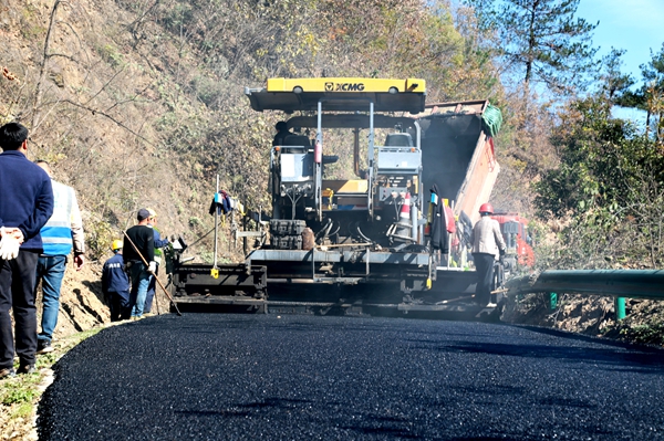 在五台乡红场河大桥至三里坪电站县道改造工程施工现场,工人和机械正紧张有序地进行沥青混凝土路面铺设。该项目总投资1885.94万元,起点位于房县五台乡红场河大桥,顺接X045梅五路段,终点至三里坪电站,全长15.4公里,路基宽6.5米,预计11月底完工。县交通运输局一行沿路查看施工现场及周边人居环境后,与五台乡政府会商决定,后续将陆续推进公交站亭优化与路肩绿化提升等工作,不断改善五台乡交通环境,方便居民便捷出行。