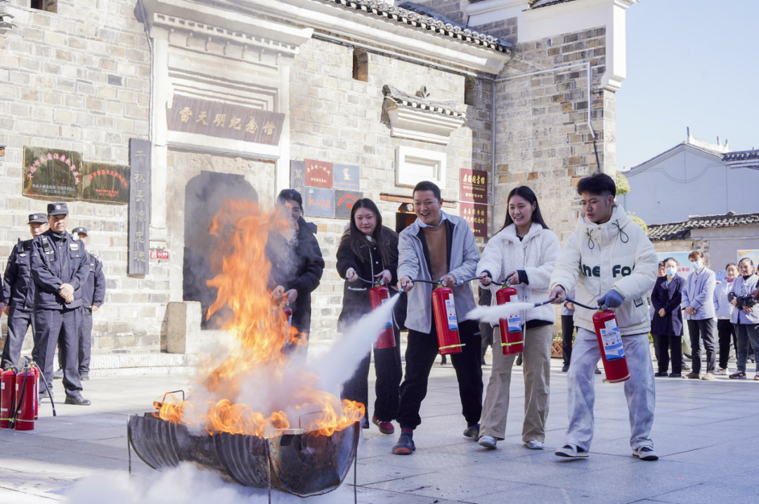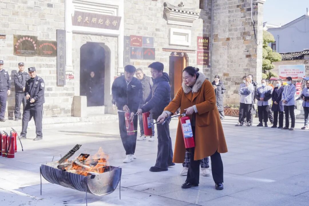 房县消防救援大队郭教官为参训人员系统培训了消防知识与技能,内容覆盖火灾类型、报警要素、疏散组织及器材使用规范。随后,全体人员在雷天明纪念馆广场进行灭火器实操演练,确保每位参训人员掌握初期火灾扑救能力。
