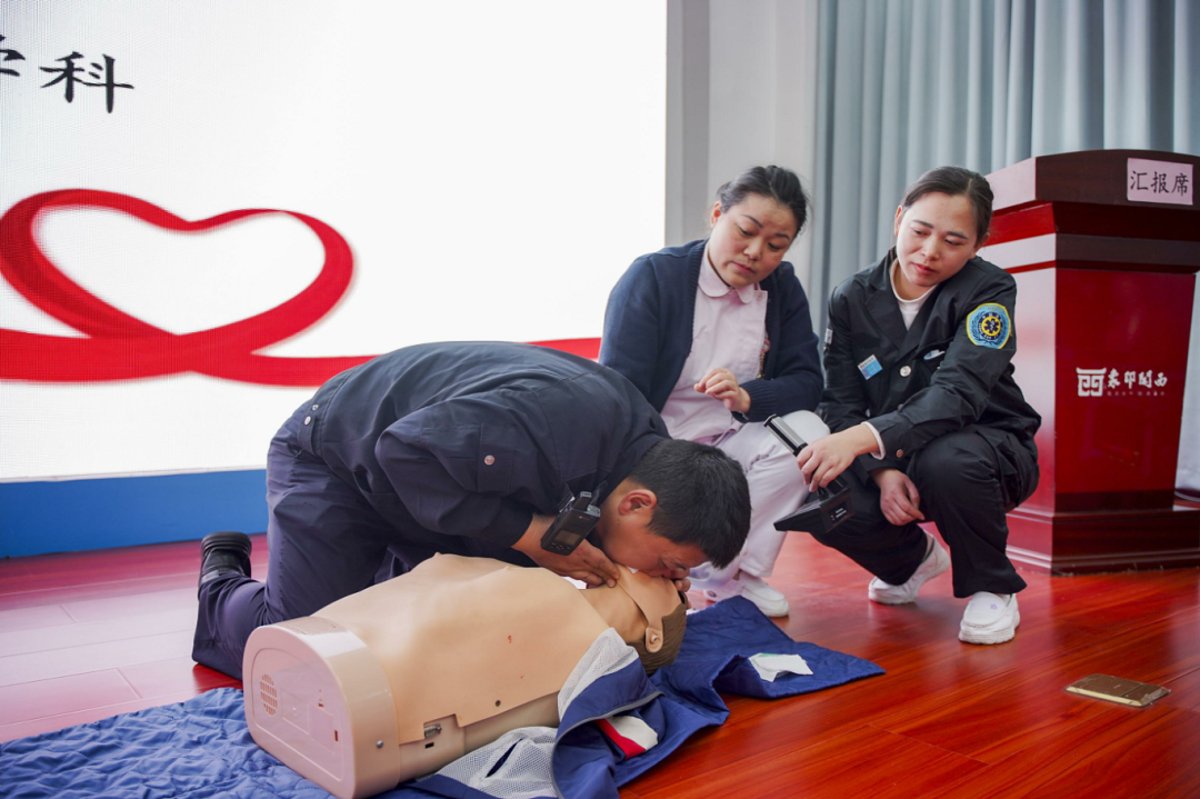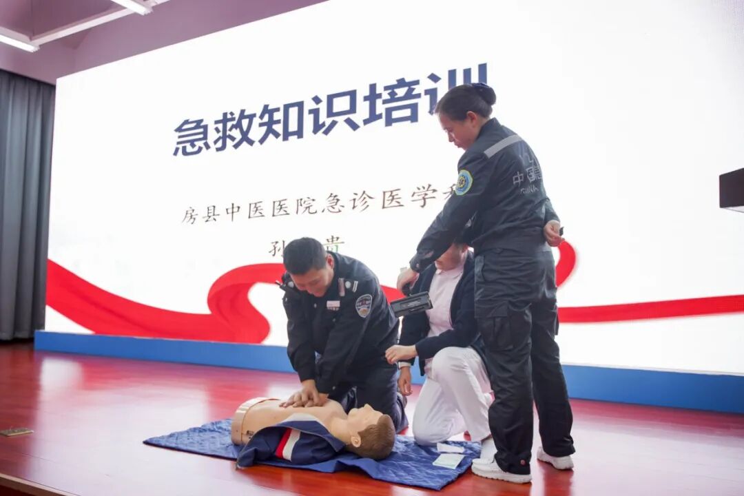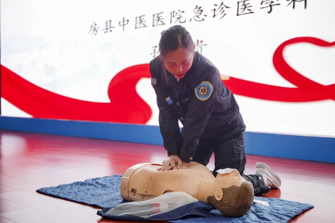 房县中医医院急诊医学科孙主任现场讲授了急救知识培训,通过现场演示与互动练习,详细讲解了心肺复苏、创伤包扎等常见意外伤害的急救处理方法,提升了商户和员工在突发情况下的自救与互救能力。