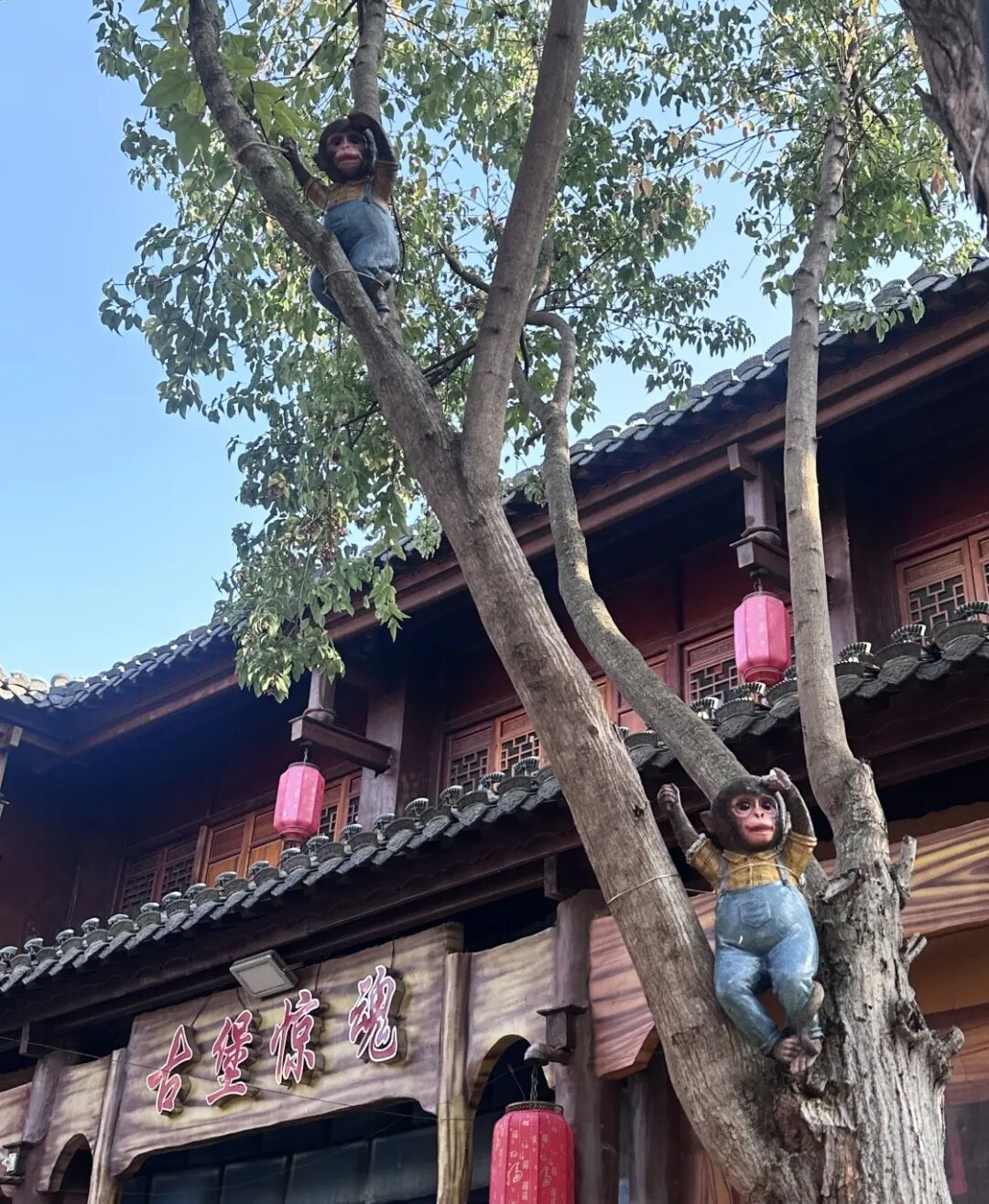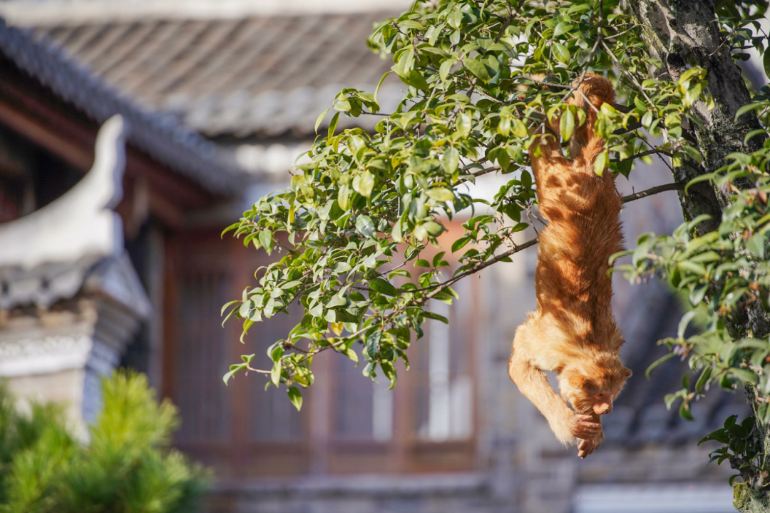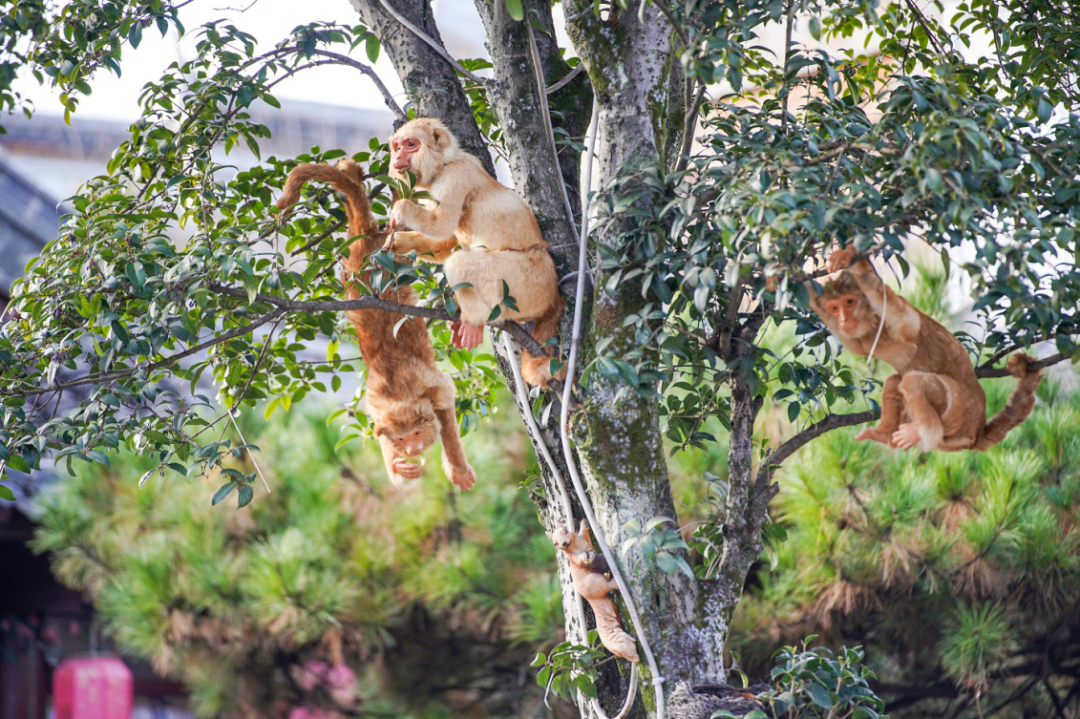 树梢间不知何时来了一群灵动的猴子