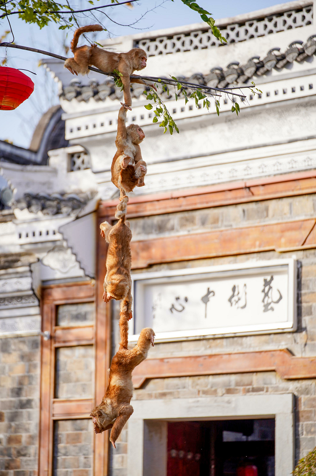 仿佛正要上演“猴子捞月”的童年趣话