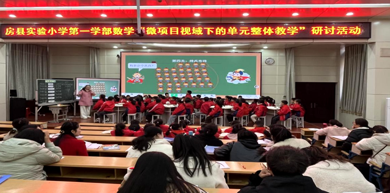 房县新闻网讯 通讯员 李双 肖晗 报道:为深化“党建+教研”融合模式,推动低年级数学单元整体教学落地,11月27日,房县实验小学第一学部聚焦“认识立体图形”和“7的乘法口诀”单元,以《西游记》闯关为统一大情景,开展“微项目视域下的单元整体教学”专题研讨活动。两位教师带头示范,1-2年级数学教师全员参与,用趣味情景串联知识,让核心素养融入课堂。