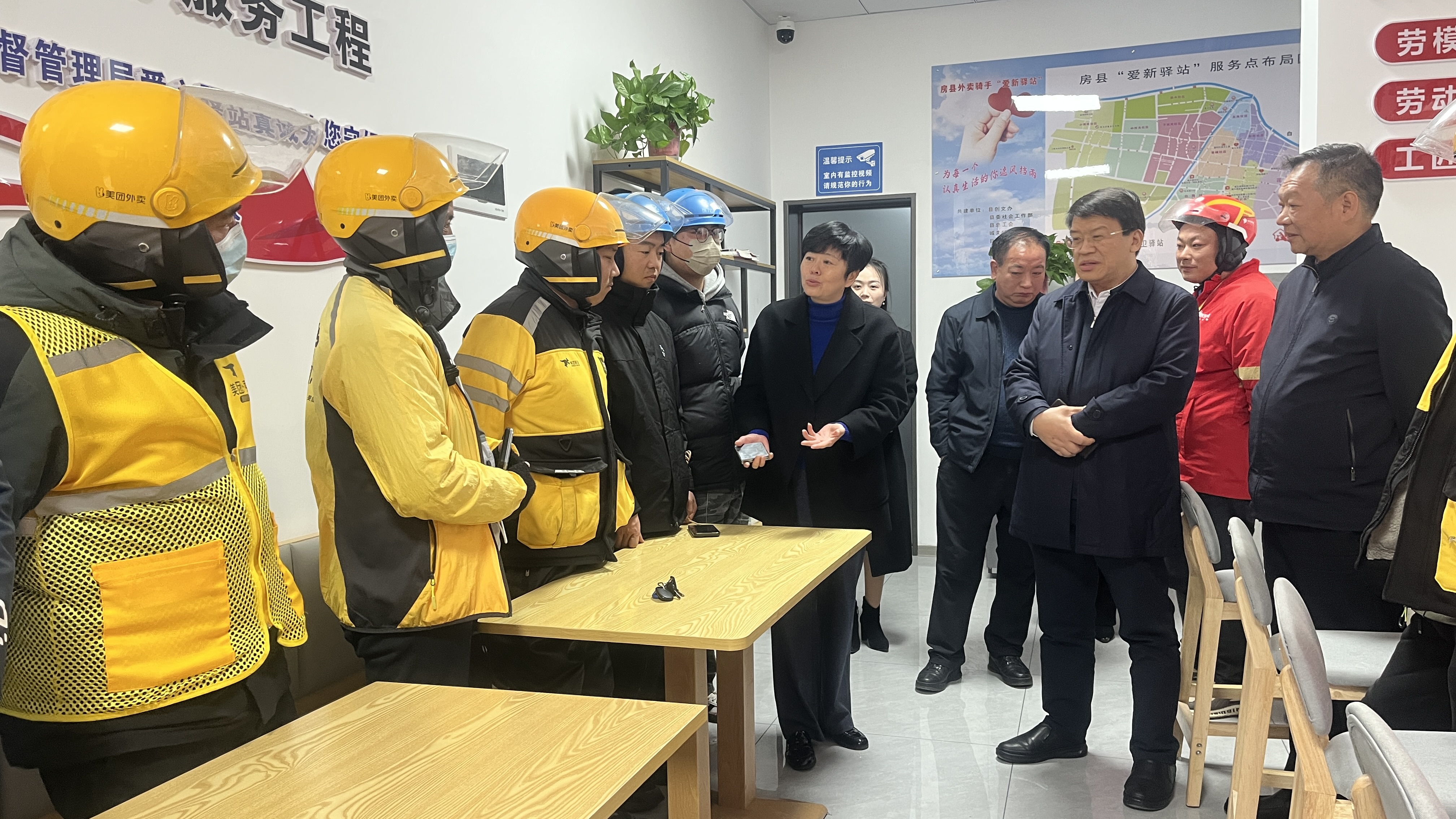 调研组一行先后在白鹤镇伏溪村调研工会工作,实地走访了十堰房州贡品酒庄有限公司、湖北《诗经》智慧茶业有限公司,参观企业生产线,查看三级工会推进小微企业的产改工作;在葵花药业集团湖北武当有限公司,询问企业职工福利,查看企业文化墙及工会工作;在房县新时代广场骑手之家,查看骑手工作间歇休息场所和硬件设施,同骑手们亲切交谈;在房县人民法院,查看“法院+工会”劳动争议多元化解工作模式;在房县总工会慰问一线职工,了解职工夜校开展情况,并查看职工书屋、乒乓球室、羽毛球馆,等硬件设施。