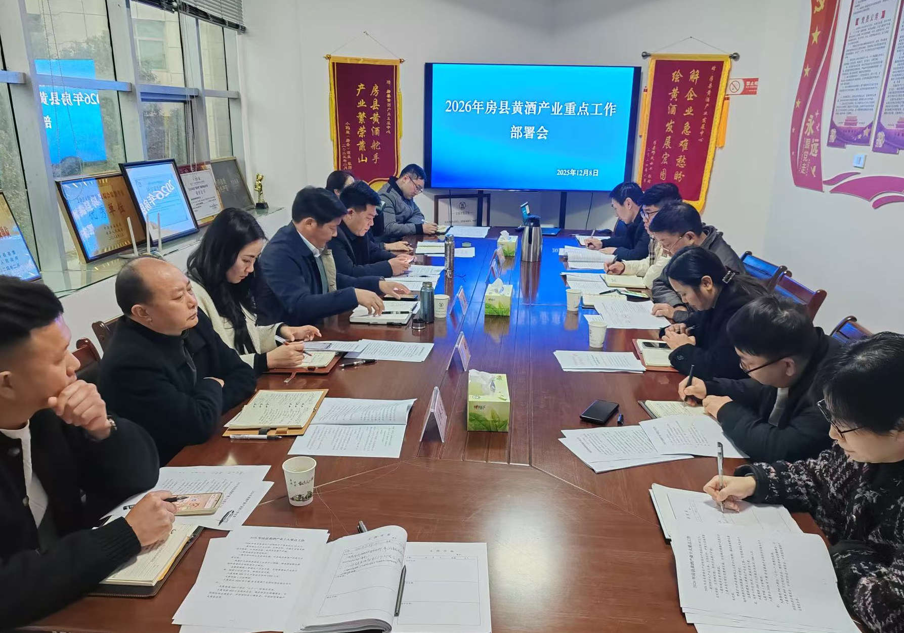 操航强调,黄酒产业作为工信部认定的历史经典产业,既是房县根植千年的特色富民产业,更是县域经济的核心增长极,推动其高质量发展使命光荣、责任重大。为奋力开创2026年产业发展新局面,会议明确重点推进“十件实事”,并围绕关键环节提出十大工作举措:一是聚焦科技赋能加大黄酒研发。深化与高等院校、科研院所合作,以科技创新驱动产品品质升级和产业现代化,聚焦新品、健康产品研发力度。二是构建立体营销体系。加快建立健全覆盖线上线下的立体化营销网络,广泛积累资源,优化渠道布局,提升市场渗透率。三是深化品牌宣传与推广。持续强化区域公用品牌建设,利用各类媒体平台讲好房县黄酒故事。四是推动产业融合与业态创新。着力培育生态酒庄,加快推进小作坊标准化改造,积极打造多元化黄酒消费场景,激发市场活力。五是规范酒坊提升步伐。针对核心主销区,持续开展品鉴推广活动,深化与重点市场的战略合作。六是注重应用场景打造。让黄酒进入生活方方面面,进入消费场景,设计生产黄酒衍生品,适应不同赛道不同层次人的需求。七是进入黄酒主销区开展推介活动。针对黄酒热销区组织开展大型专题推介活动,建设黄酒品鉴馆,加大海外市场建设。八是夯实人才支撑与要素保障。建立健全黄酒产业人才培育机制,探索成立专业黄酒培训学校,为黄酒产业发展提供坚实保障,对酿造、营销、直播等各类人才开展培训发证。九是营造各层级对黄酒的支持氛围。争取纳入省级管理体系,高标准建设黄酒产业园区,跟进安全体系建设,风险防范建设,争取黄酒地标、区域公用品牌的立法保护工作,维护好房县黄酒风清气正市场环境。十是落实政策支持保障。全力推进经典产业复兴,做足做实本地支持政策实施。