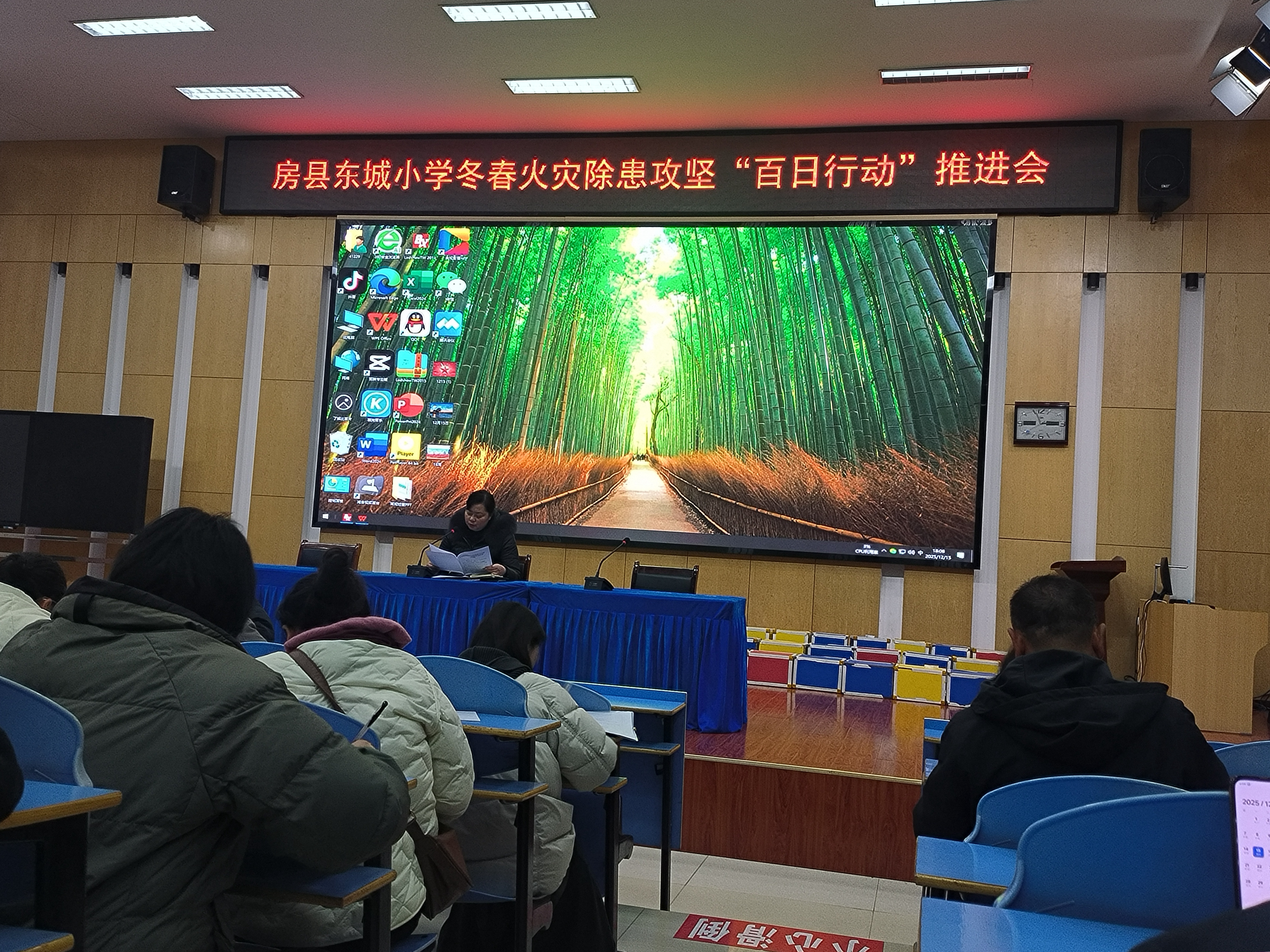 房县新闻网讯 通讯员 李英 冀曼 报道: 为切实防范化解冬春季节校园安全风险,全力保障师生生命财产安全。12月15日,县东城小学组织召开冬春火灾隐患攻坚“百日行动”推进会,全面部署校园消防安全工作,进一步筑牢校园安全防线。