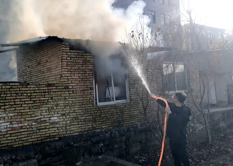 当日,陈越途经该居民家附近,发现院内冒出浓烟,走近查看,院内无人,住房旁边杂物间内堆放的柴火、玉米叶等正熊熊燃烧,现场浓烟滚滚,火势威胁着旁边的高压变电器及周边民房安全。
