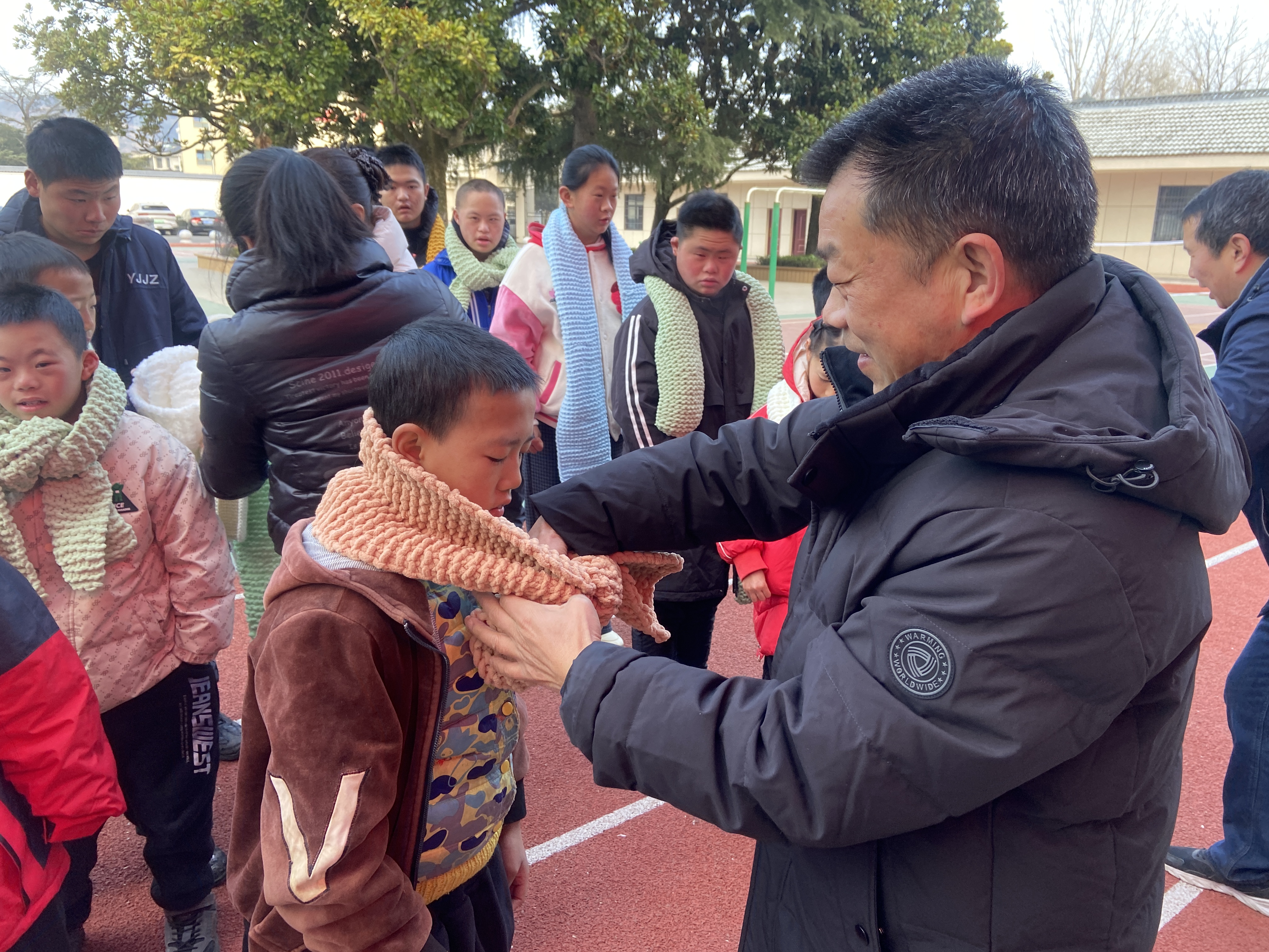 当色彩鲜艳的爱心围巾被逐一送到孩子们手中时,校园里响起了欢快的笑声。孩子们迫不及待地接过围巾,有的在老师的帮助下仔细系好,有的伸出小手反复摩挲着柔软的面料,还有的主动向身边同伴展示自己的新围巾,一张张稚嫩的脸庞上洋溢着幸福与喜悦。