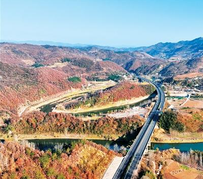 在湖北省十堰市房县,“四好农村路”、高速公路、国道互通连接,构成通达四方、城乡结网式交通网,形成“以路兴产业、以产业拓路、路产融合发展”的格局。图为房县红塔镇马栏村附近,高速公路、乡村公路与村组、产业基地互联互通。(通讯员:张启龙)