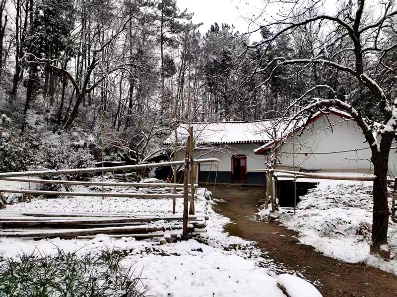 故乡的雪,没有城市的喧嚣浮躁,只带着乡野独有的宁静与安详。雪花轻盈地栖在老屋的屋檐上,落在院角的梅枝间,铺满门前的田野。每一片雪,都是大自然精心雕琢的精灵,晶莹剔透,在晨光里漾着细碎的光。远处的凤凰山,在雪的掩映下褪去了平日的苍莽,宛如一幅晕染开的水墨画,渺远而肃穆。平日里蜿蜒的田埂小径,此刻被白雪覆盖,成了通往童年的秘径,引着人一步步,走进记忆的深处。