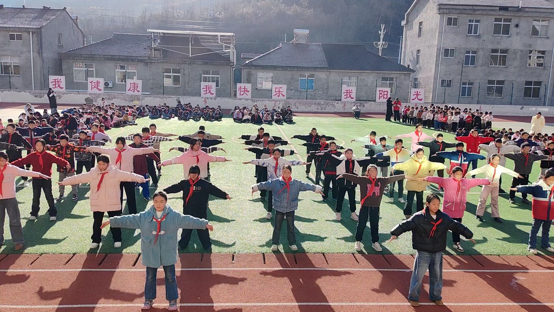 下午2,展演比赛在舒缓的乐声中拉开序幕。操场上,每个方阵由本年级师生共同组成,展现出河兴小学全员参与、教学相长的生动氛围。伴随着悠扬的太极韵律,师生们神情专注、动作协调,起势、运掌、转体、推手……招式柔缓连贯、动静相宜,既体现了太极“松柔缓慢、连贯均匀”的独特韵味,也彰显出师生在长期训练中形成的默契与凝聚力。台上演绎认真投入,台下掌声此起彼伏,整个运动场洋溢着传统文化与现代校园体育交融的蓬勃朝气。