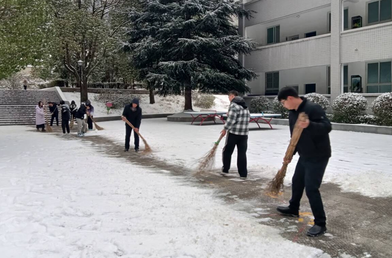 以雪为令,劳动实践显担当。“雪停即行动,安全我先行!”清晨的校园里,铁锹挥舞的铿锵声、师生协作的欢声笑语交织成冬日最美的旋律。学校迅速启动冰雪应急响应,校领导带头冲锋,教职工分组分片,学生们以班级为单位组成“少年先锋队”,共同投身教学楼前、走廊台阶、校园主干道的积雪清扫工作。寒风中,老师们弯腰铲冰的身影成为最生动的榜样,同学们两两协作、接力运雪,小小的手掌虽冻得通红,却始终干劲十足。