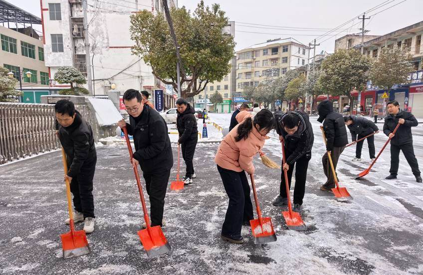 全域联动,织就党群连心“防护网”。在机关干部的带动下,扫雪除冰行动迅速向全镇延伸。各基层党组织迅速组建党员志愿服务队,镇村干部、网格员、志愿者率先扛起责任,奔赴清雪一线。从集镇到村庄,从主干道到背街小巷,一场全民参与的清雪行动火热展开,共同勾勒出一幅干群同心、共御风雪的温暖画卷。全镇累计发动党员群众500余人次,逐步打通全镇“安全通道”。