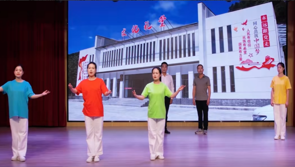 图为房县国士广场上演的郧剧小戏《清风宴》