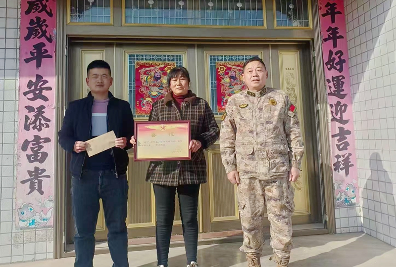 房县新闻网讯 通讯员 宋元军 张文亚 报道:2月12日,门古寺镇党委、政府组建“送喜小组”,带着党和政府的关怀与全社会的尊崇,为辖区5名现役军人家庭登门送上喜报,将立功受奖的荣耀与温暖精准送达军属心坎上,以实际行动弘扬“拥军优属、拥政爱民”的光荣传统,凝聚军地同心筑国防的强大合力。