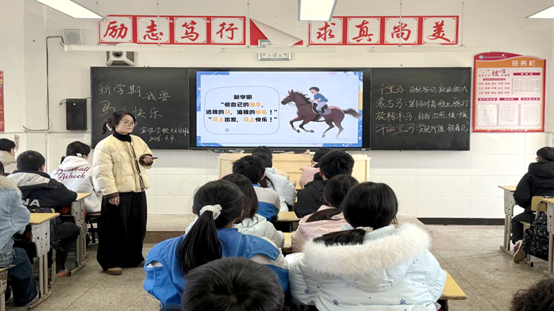 本次班会课以“做自己的骑手,选我的马,追我的快乐!”为口号,巧妙地将马年的生肖寓意与心理健康教育相结合。老师通过精心设计的PPT和互动环节,引导同学们认识到,成长并非只有“一马当先”这一种模式,而是可以根据自身情况,选择最适合自己的“成长伙伴”。课上,老师向同学们介绍了四匹寓意深刻的“成长之马”。在小组讨论环节,同学们积极分享自己新学期可能遇到的挑战,并思考自己想要选择的“成长之马”。随后,同学们在便笺纸上写下自己的“新学期选马宣言”,为新学期的心理健康成长注入了满满的能量。