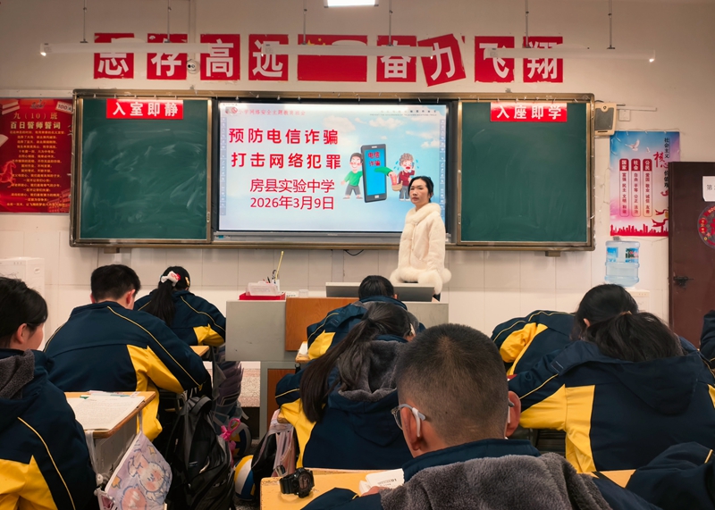 房县新闻网讯 通讯员 任姗姗 报道:为切实筑牢校园反诈安全防线,提升全校师生的识骗、防骗、拒骗能力,守护师生财产安全与校园和谐稳定。3月9日,县实验中学以“防范电信网络诈骗,守护青春平安校园”为主题,多措并举开展系列反诈宣传教育活动,让反诈知识入脑入心,让反诈意识落地生根。