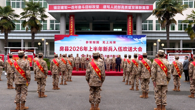 房县新闻网讯 记者 曹其琪 通讯员 谢圣 报道:春风催征鼓,热血赴戎行。3月19日,我县隆重举行2026年上半年新兵入伍欢送大会。县委常委、县人武部政委周绍涛,副县长叶艳东与社会各界共同见证房陵优秀儿女奔赴军营、开启保家卫国新征程的荣耀时刻。