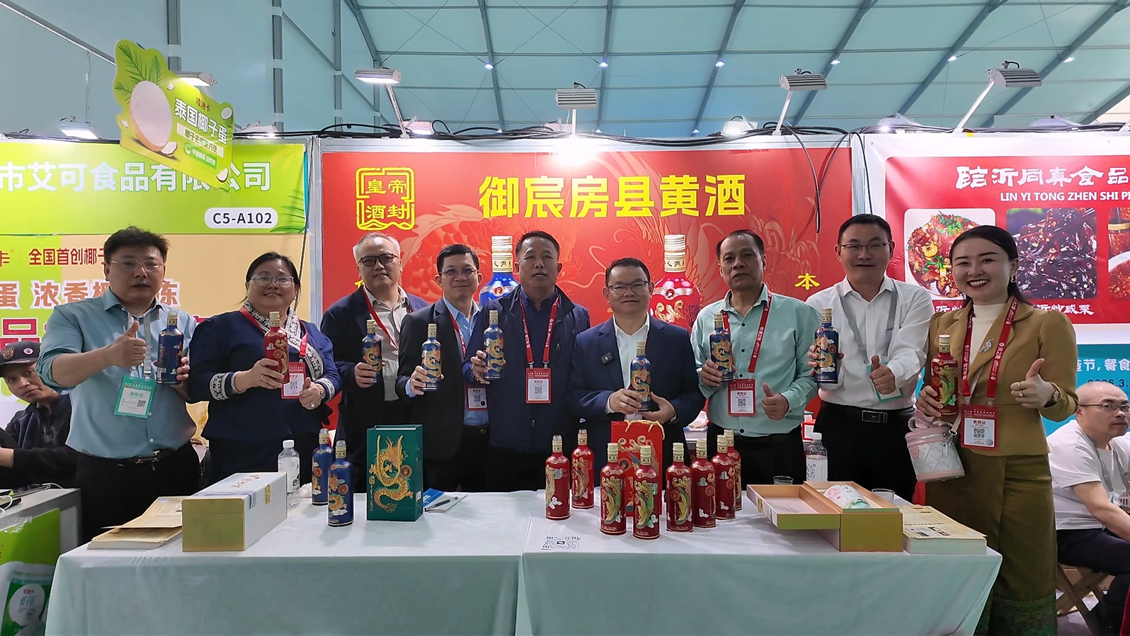 展会现场,人潮涌动,房县黄酒备受青睐,独特的文化韵味与甘润回甜的口感,让每一位品尝者都赞不绝口。展台前笑语不断,交流洽谈热烈,不少客商品尝后当场下单。尤其引人注目的是,来自老挝的外国友人也被这缕酒香吸引,驻足品尝后连连竖起大拇指,用不太熟练的中文笑着说:“房县黄酒好喝!”