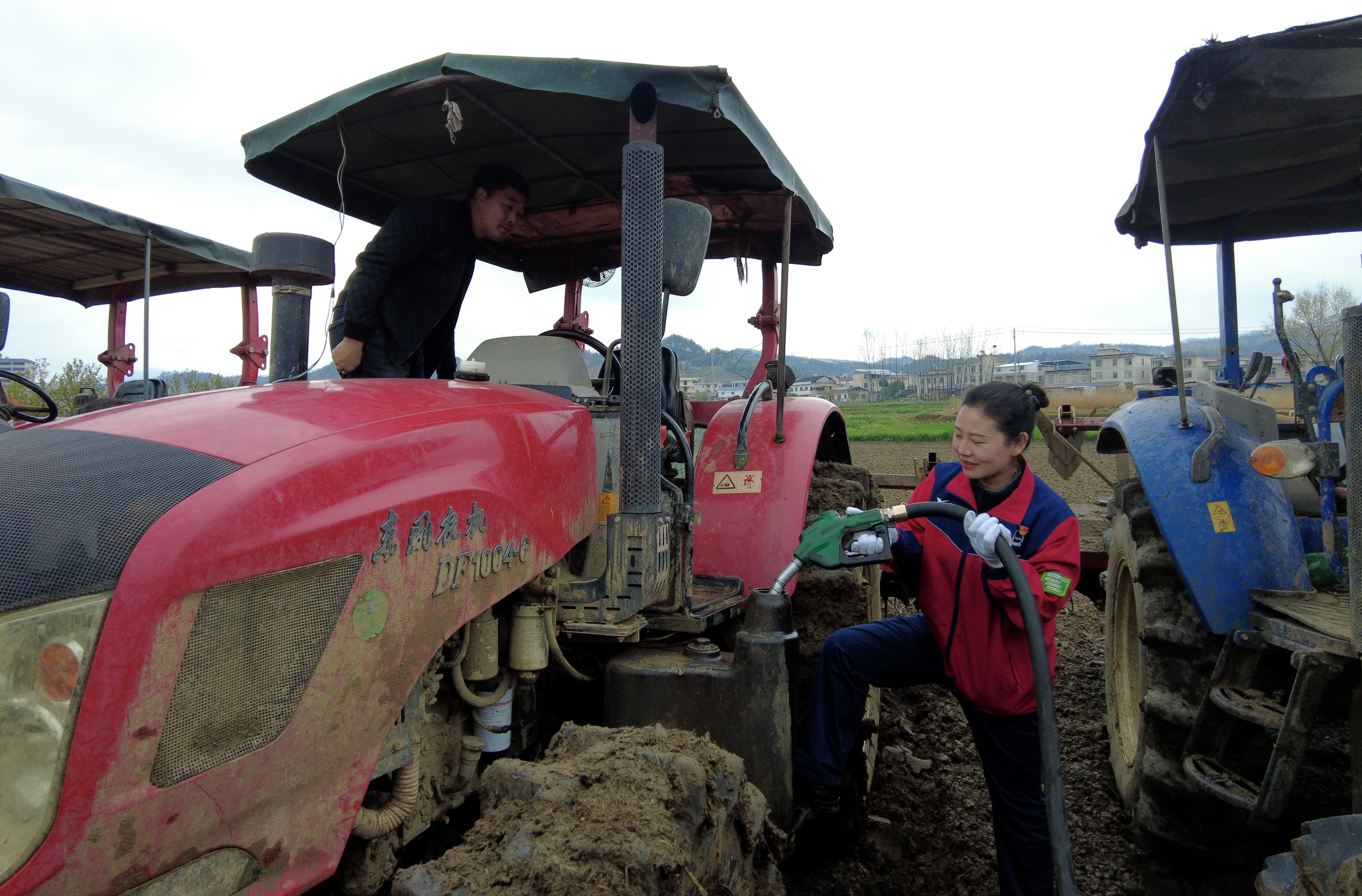 在红塔镇五将村,记者看到油罐车缓缓驶入田埂旁,工作人员迅速展开作业,为农机加入燃油,提供及时的供油保障。