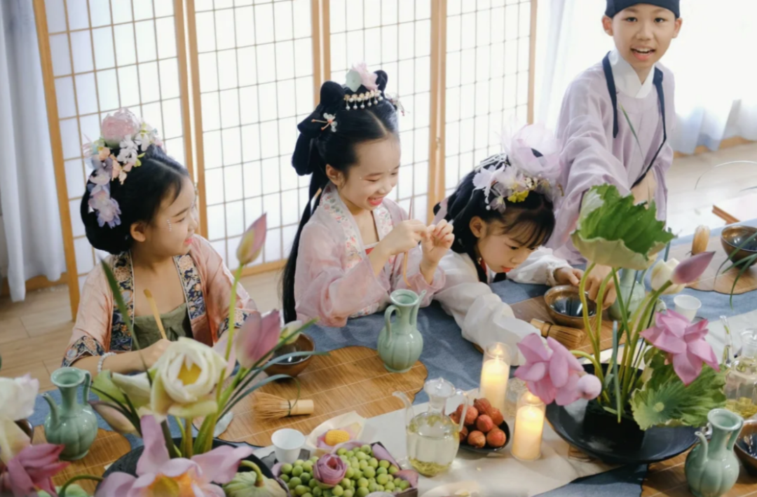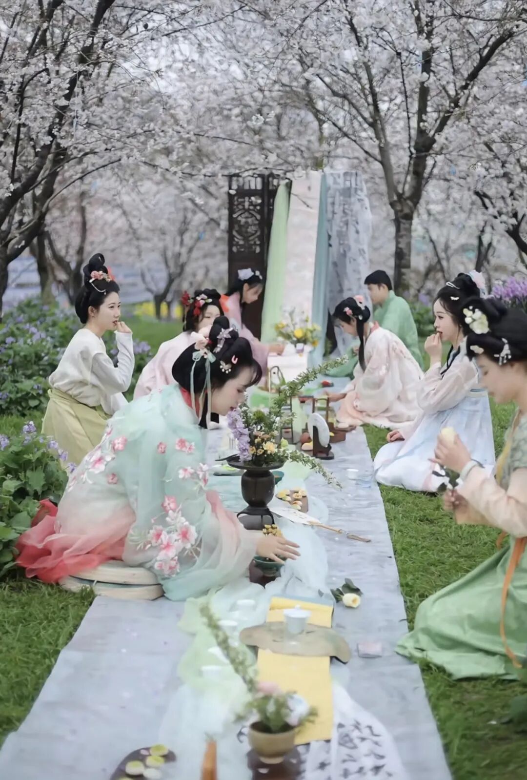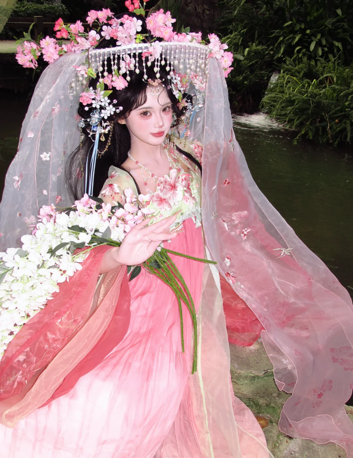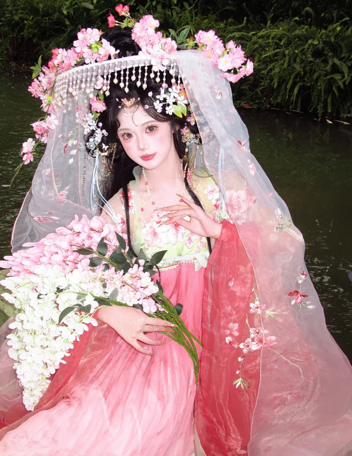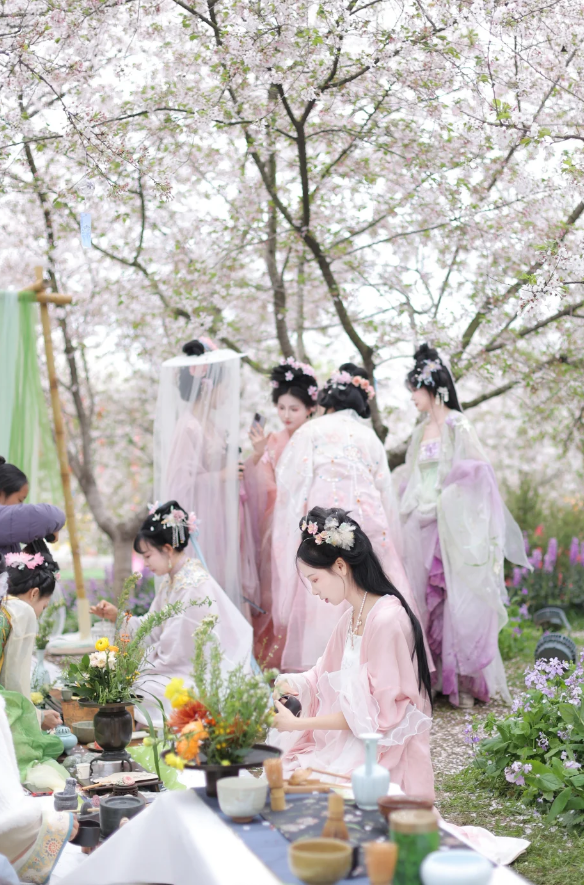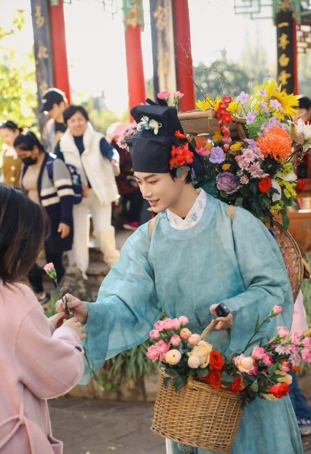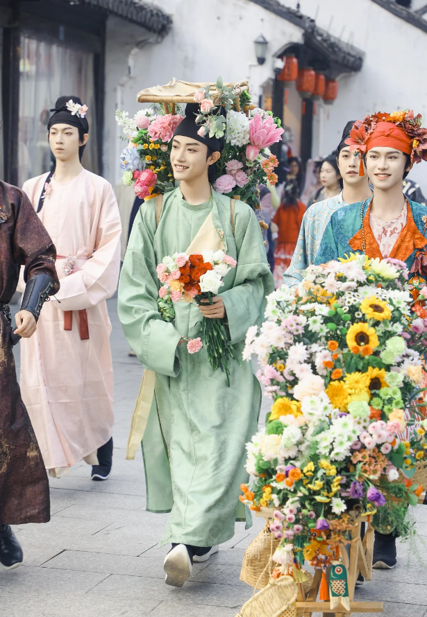 他们身着汉服,肩挑花担