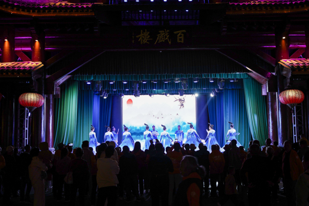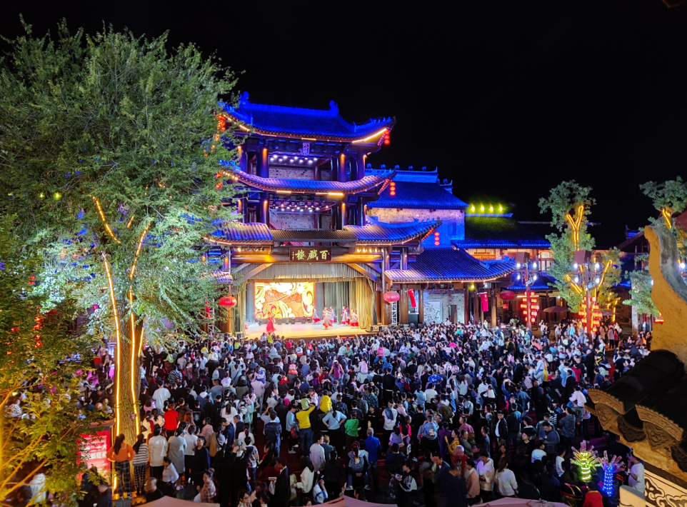 夜幕降临,百戏楼灯火璀璨