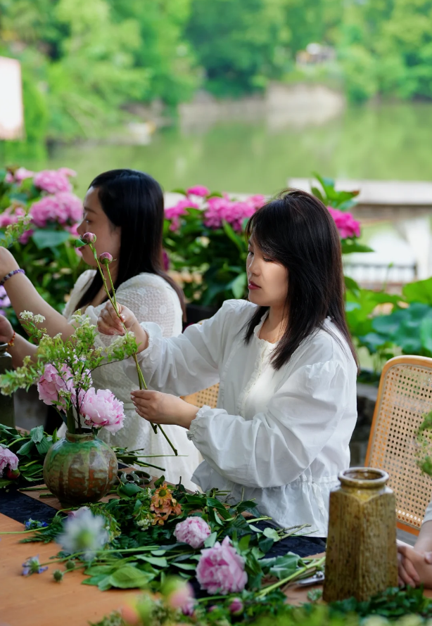 在鹿鸣广场特别开启“非遗花艺工坊”